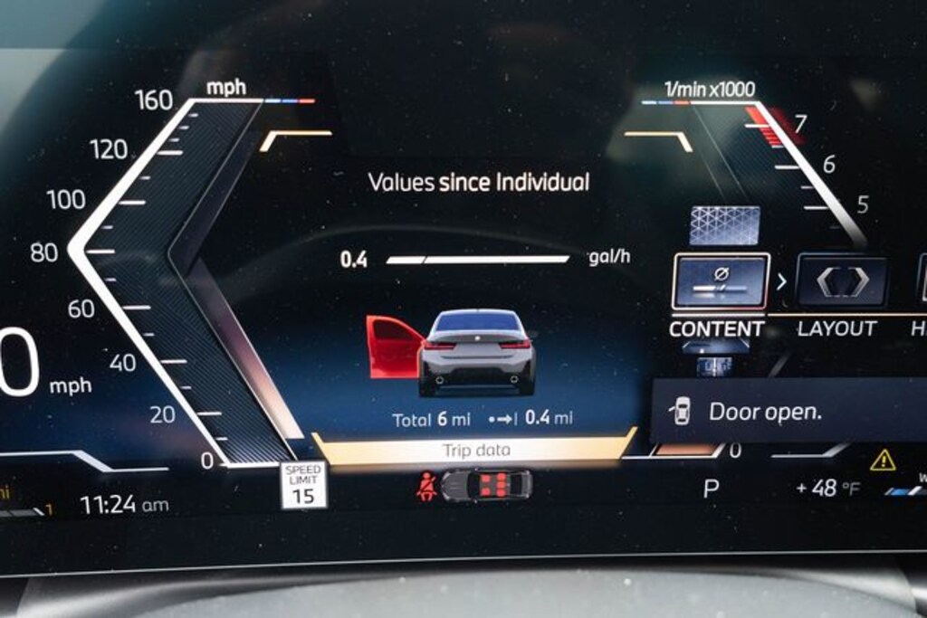 Step inside the meticulously crafted cabin and you'll be greeted by a wealth of premium features, including the stunning BMW Curved Display with Head-Up Display, Heated Steering Wheel, and Wireless Device Charging. The Harman/Kardon Surround Sound System provides an immersive audio experience, while the Parking Assistance Package and Driving Assistance Package ensure a seamless and secure driving experience.